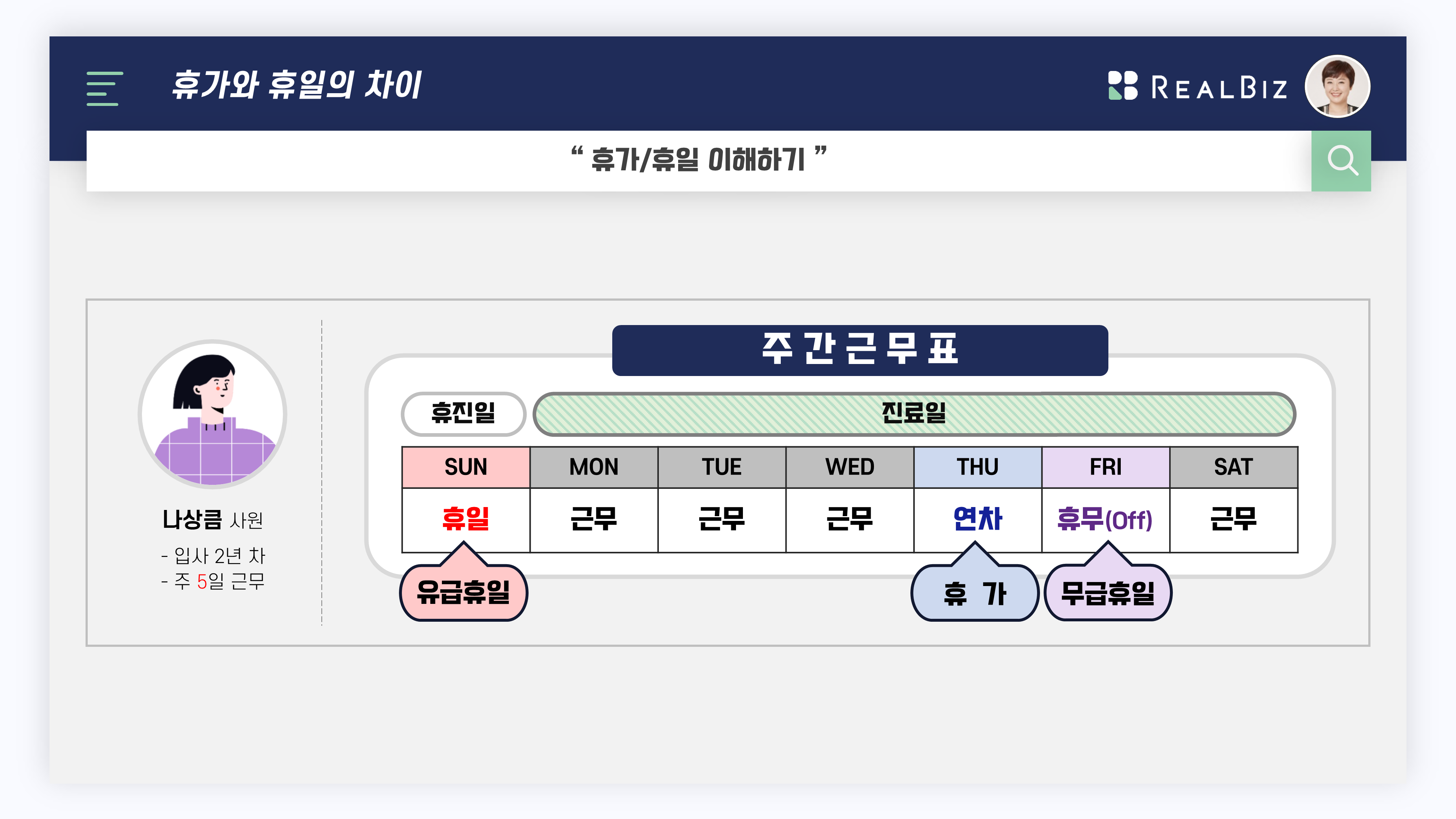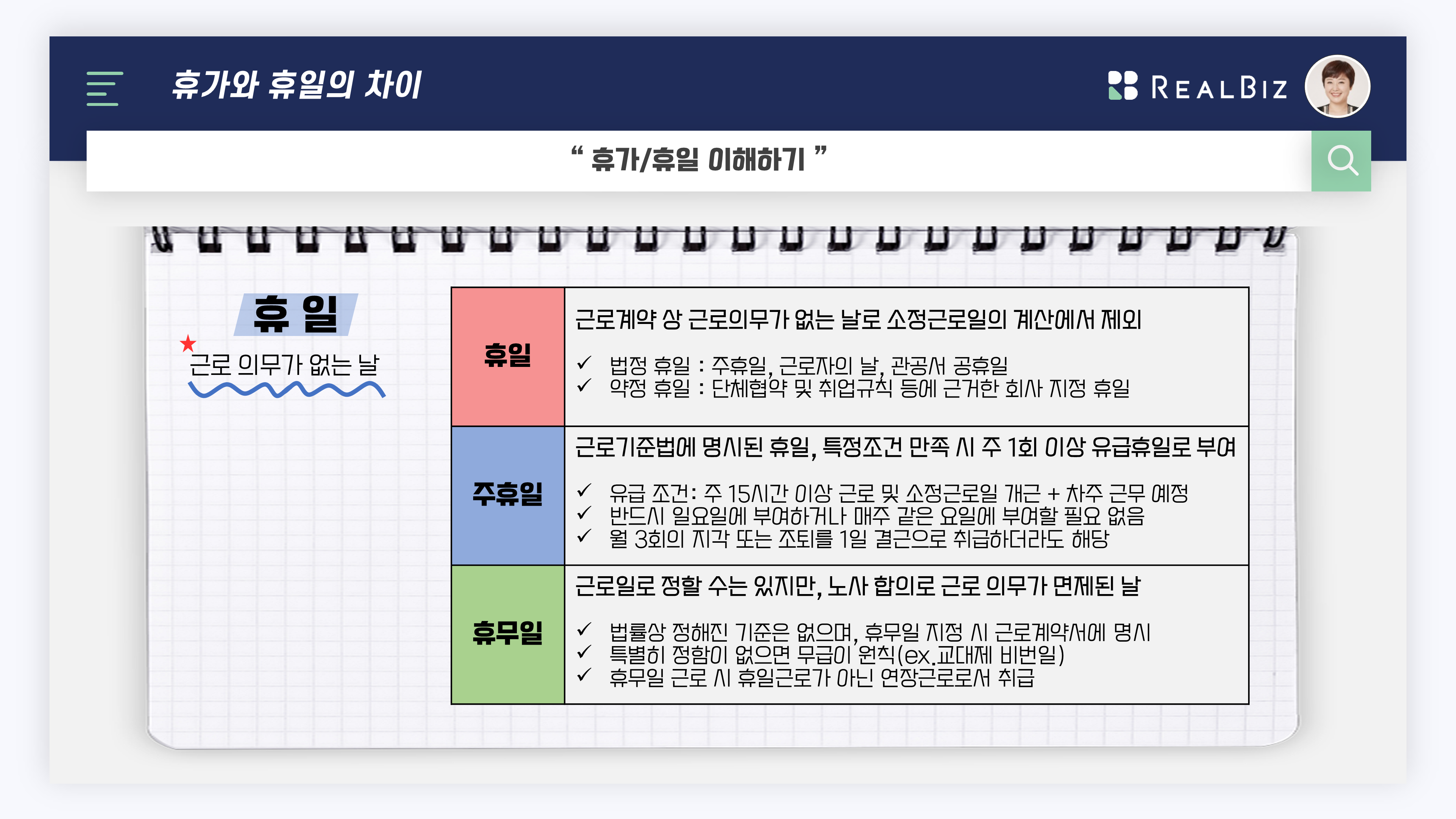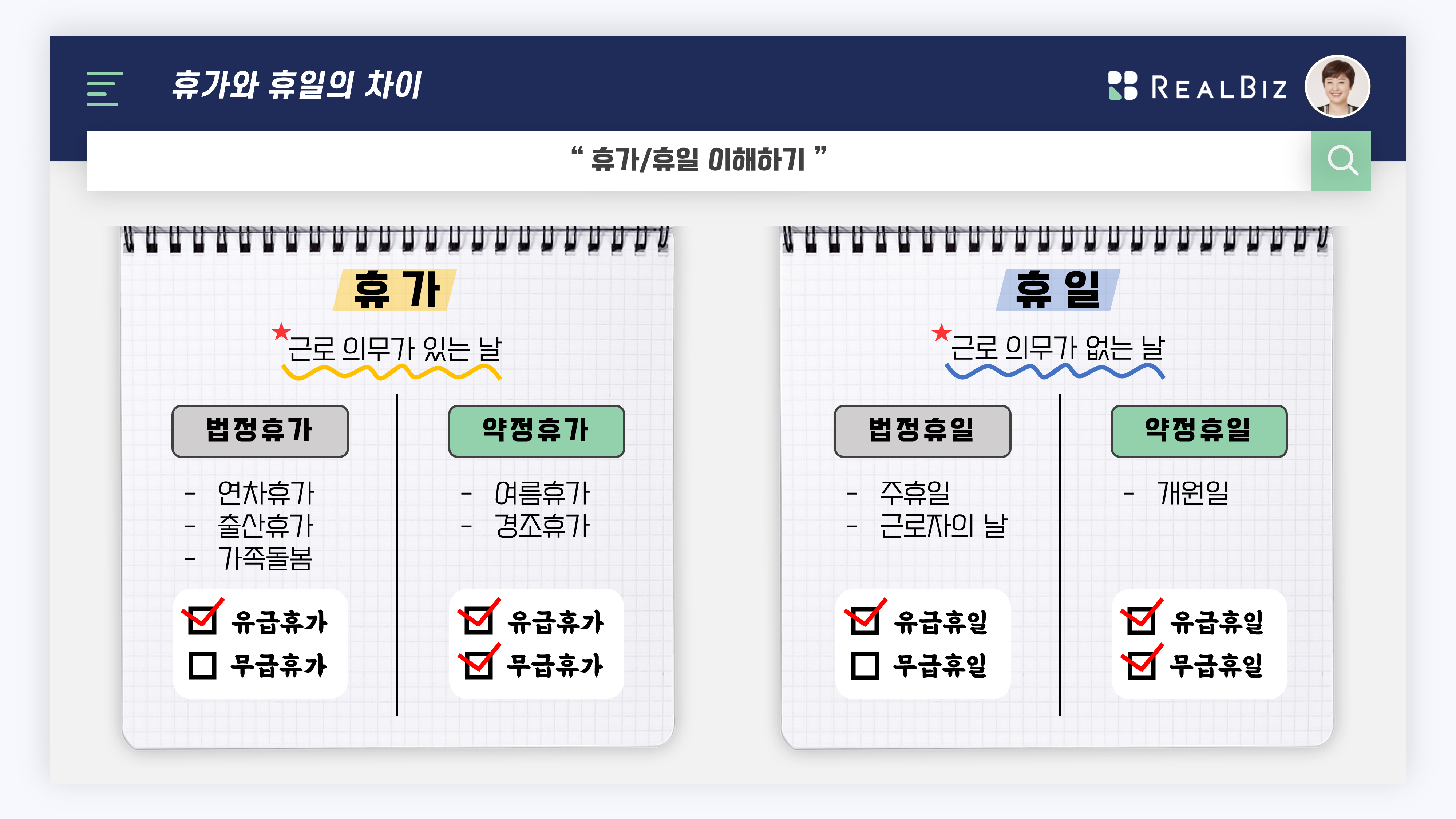 휴가와 휴일의 차이를 한장으로 정리해보자면 위의 이미지와 같습니다!