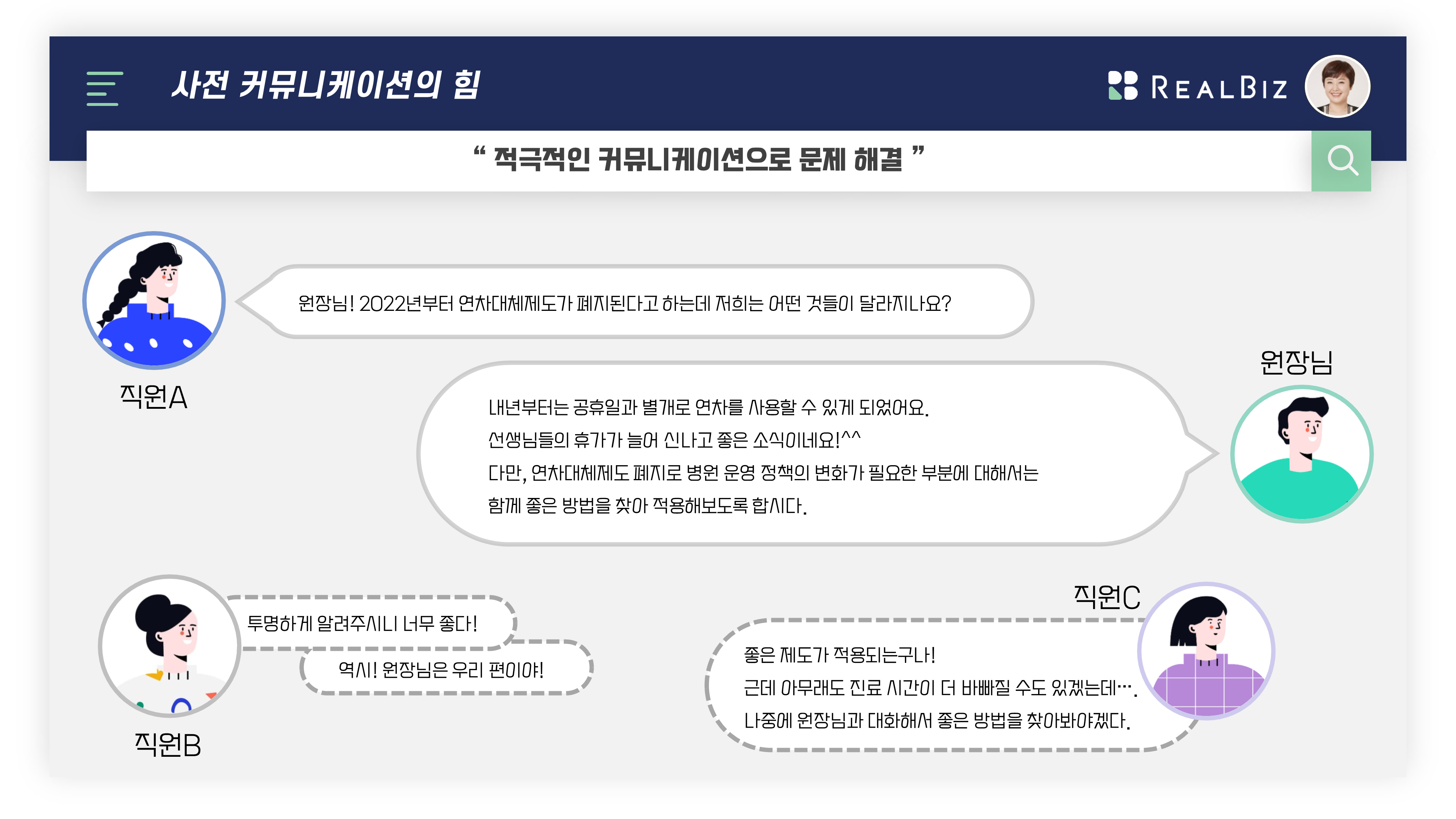 몇몇 직원은 2022년 연차의 변화에 대해서도 원장님께 직접 질문을 하기도 합니다.